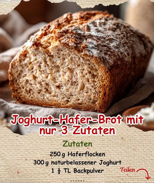 Joghurt-Hafer-Brot mit nur 3 Zutaten – Ohne Hefe, Ohne Kneten, Einfach Genial!