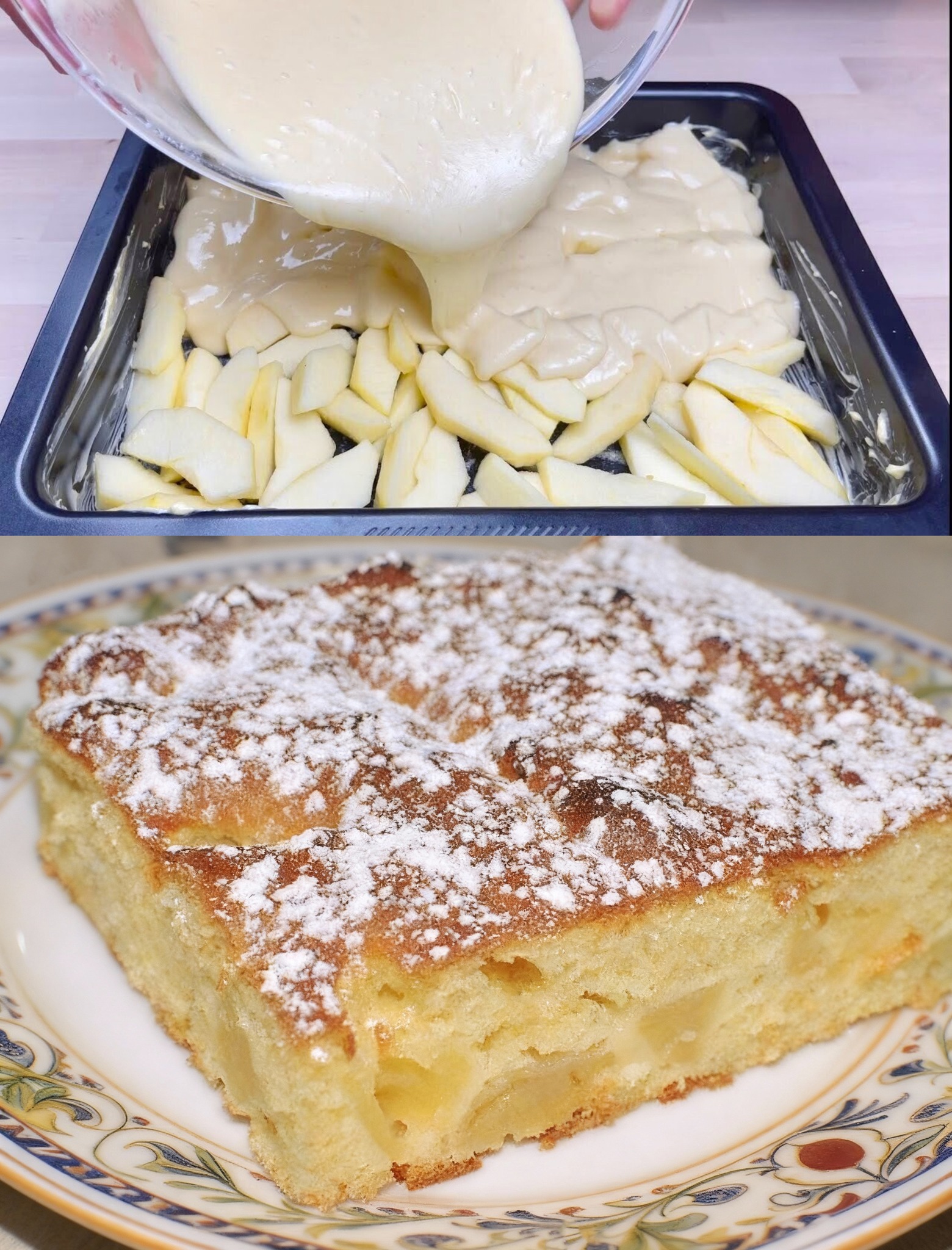 Zutaten: 3 Äpfel 3 Eier 150 g Zucker 150 g Mehl 1 Päckchen Vanillezucker 1 Päckchen Backpulver 100 ml Öl 100 ml Milch 1 TL Zimt (optional) Etwas Butter für die Form Puderzucker zum Bestäuben Zubereitung: Fortsetzung auf der nächsten Seite 👇(Seite 2)👇