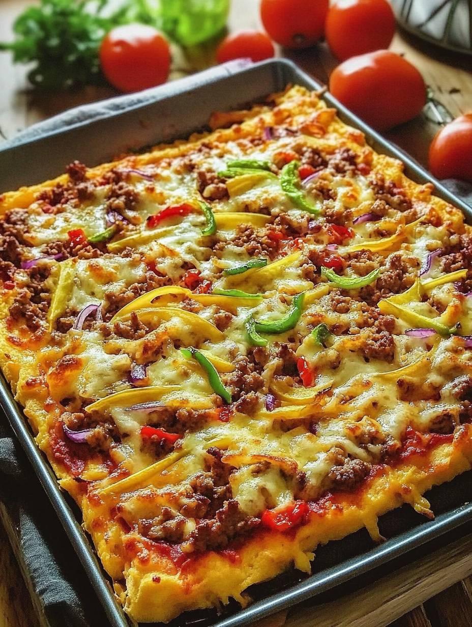 Kartoffelpizza mit Hackfleisch, ohne Hefeteig